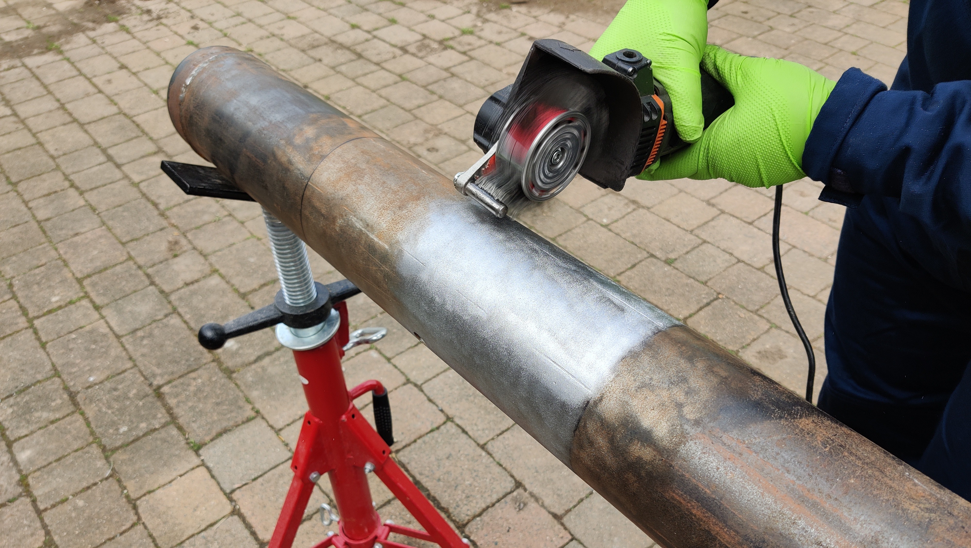 Geometry profiling with silica or metal epoxy pastes is used to eliminate sharp transitions and ensure complete composite contact across irregular surfaces. Where proprietary clamps or fittings are present, protruding fixings are removed and the transition faired before laminate application.