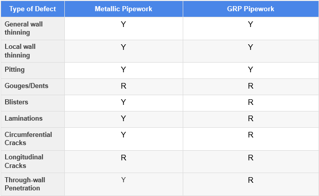 The table below summarises the type of defects that can be repaired using composite wrap repair systems.